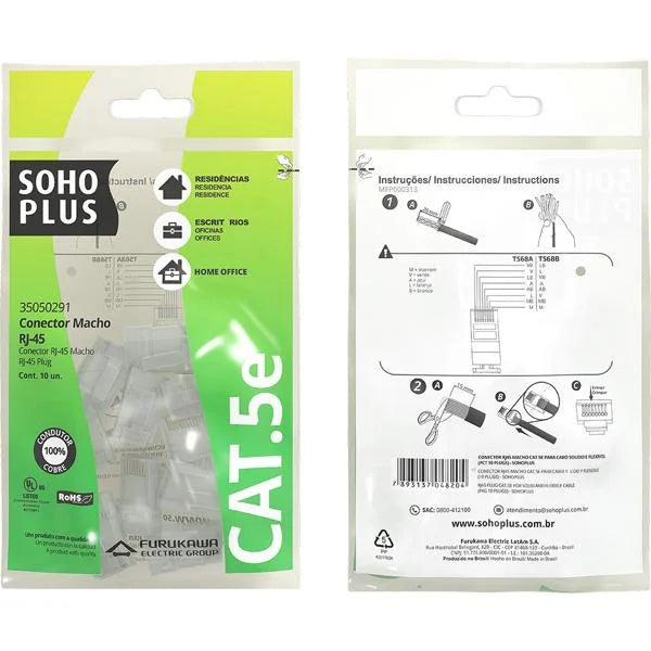 Conector RJ45 Macho CAT.5E Sohoplus Furukawa PT (Pacote com 10 unidades)